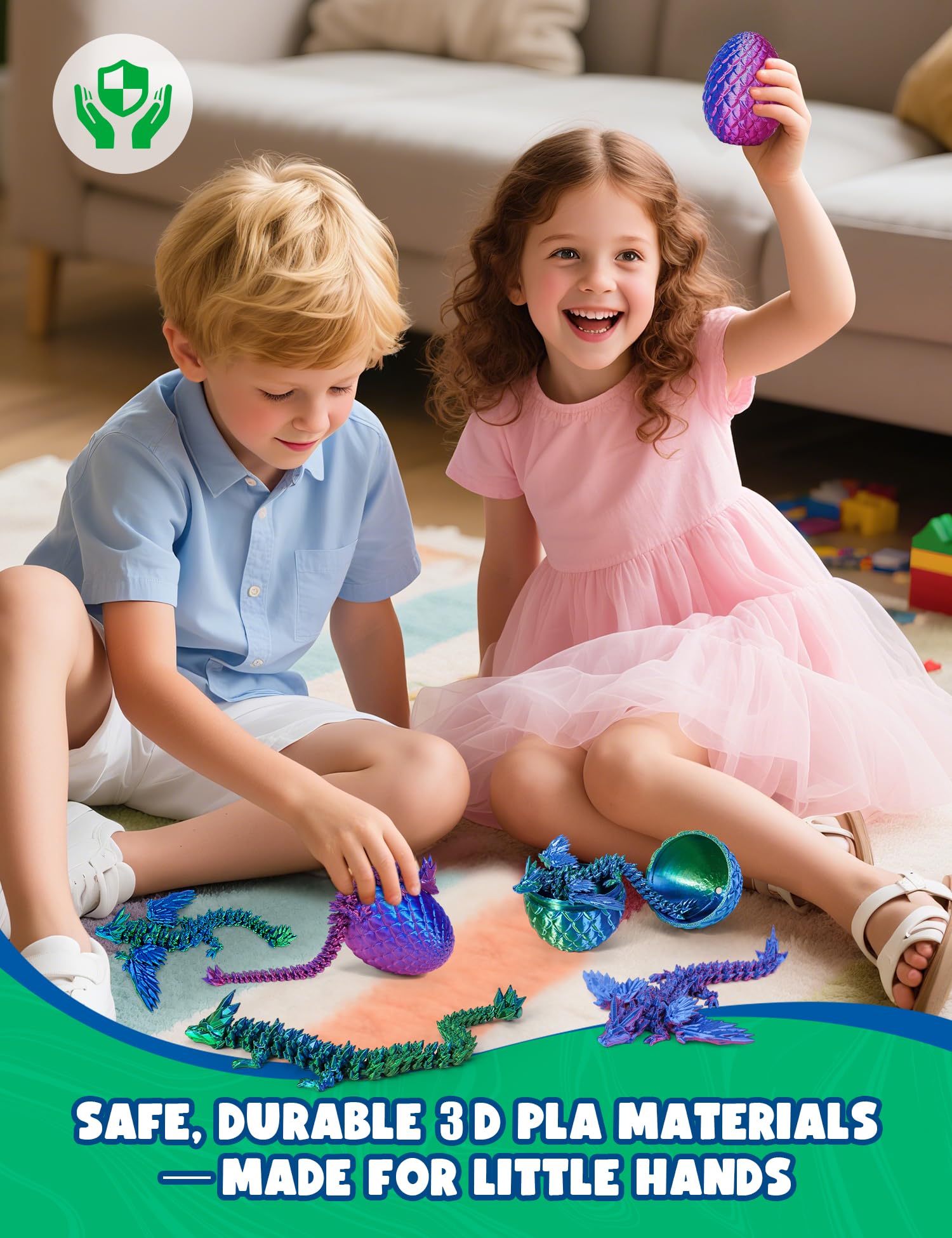 - Aousin 3D Printed Dragon Eggs with 4 Dragons Inside - Swappable Wing, Flexible Articulated Magnetic Dragons Animals Fidget Toy for Kids (Purple+Blue)