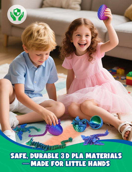 Aousin 3D Printed Dragon Eggs with 4 Dragons Inside - Swappable Wing, Flexible Articulated Magnetic Dragons Animals Fidget Toy for Kids (Purple+Blue)