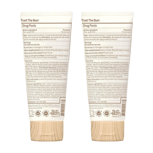 Baby Bum Mineral Sunscreen SPF 50 for Face & Body, Fragrance-Free, Sensitive Skin Safe, Travel Size 3oz, Pack of 2