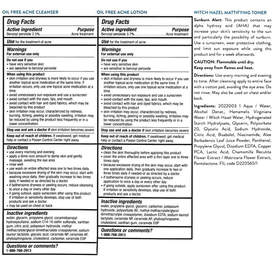 Acne Free 3 Step 24-Hour Acne Treatment Kit - Oil-Free Cleanser, Witch Hazel Toner & Acne Lotion with Benzoyl Peroxide for Teens & Adults