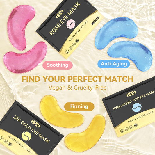 Under Eye Patches 30 Pairs – 24K Gold, Hyaluronic Acid & Rose Eye Mask for Dark Circles, Puffy Eyes, Wrinkles, Under Eye Care Gift