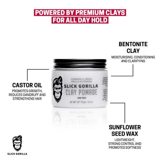 Slick Gorilla Clay Pomade for Men – Firm Hold, Natural Matte Finish Hair Clay | Non-Greasy, Easy to Wash, No Flakes | 2.5 oz (75 ml)