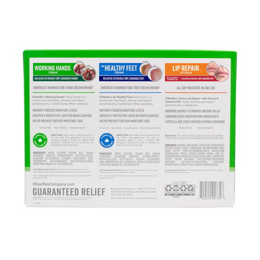 O'Keeffe's Giftbox Including Lip Repair with Cherry and Vitamin E Oil Stick, Working Hands Jar and Healthy Feet Jar, Gift Idea