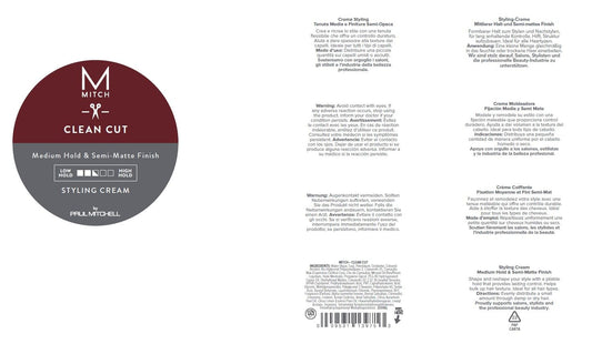 MITCH by Paul Mitchell Clean Cut Styling Cream for Men, Medium Hold, Semi-Matte Finish, For All Hair Types + Short to Medium Hair, 3 oz.