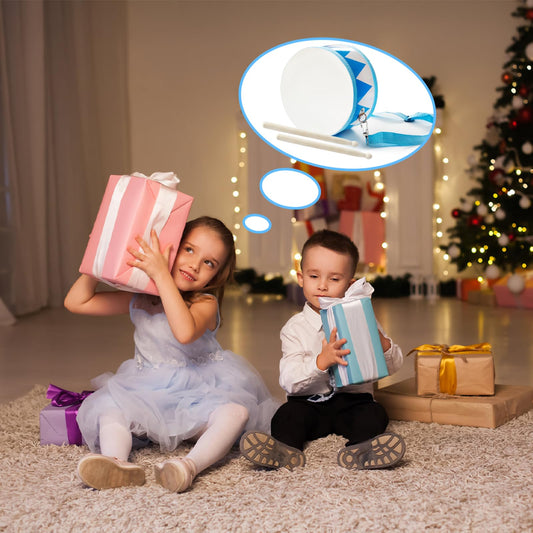 Kids 8" Wooden Drum Set with Adjustable Strap & 2 Drumsticks – Educational Musical Toy for Toddlers, Boys & Girls, Sensory Fun