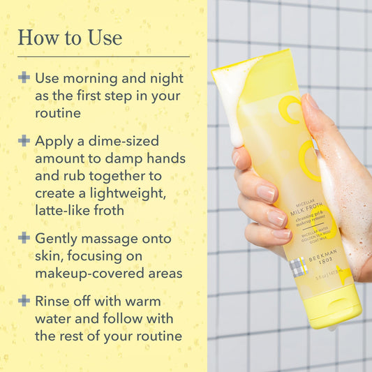 Beekman 1802 Micellar Milk Froth Gel to Foam Cleanser – 2-in-1 Makeup Remover & Cleanser with Goat Milk & Sea Moss, Fragrance-Free, 5 fl. oz