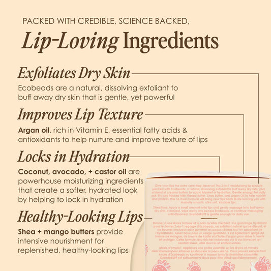 Grande Cosmetics GrandeBUFF Moisturizing Lip Scrub with Mango Butter & Shea Butter - for Smoother, Softer-Looking Lips (0.53 fl oz)