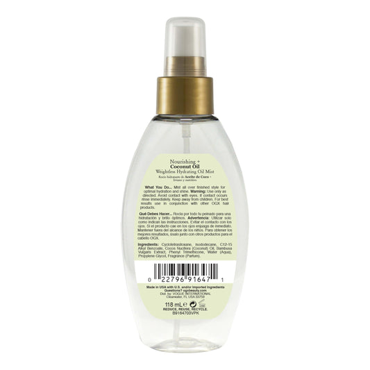 OGX Nourishing + Coconut Oil Weightless Hydrating Hair Mist, Leave-In Treatment with Bamboo Extract, Paraben & Sulfate-Free, 4 Fl Oz