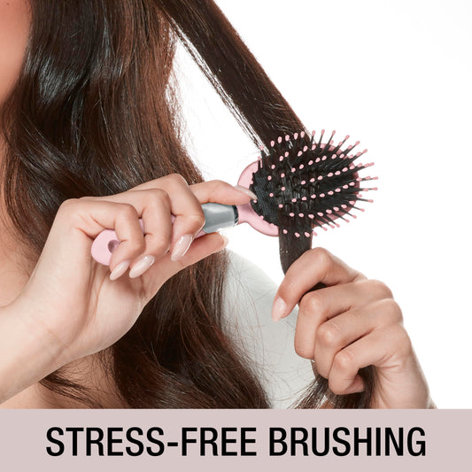 Conair Velvet Touch oval cushion hair brush - Travel Hairbrush- Detangling - curly or straight styles - detangler brushes - women or men - Blush Pink