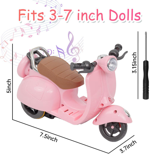 Doll Electric Scooter with 360° Rotating Lights & Music 5 Color LED Lights Cute Motorcycle Toy for Dolls, Doll Vehicle Desktop Decor (Pink)
