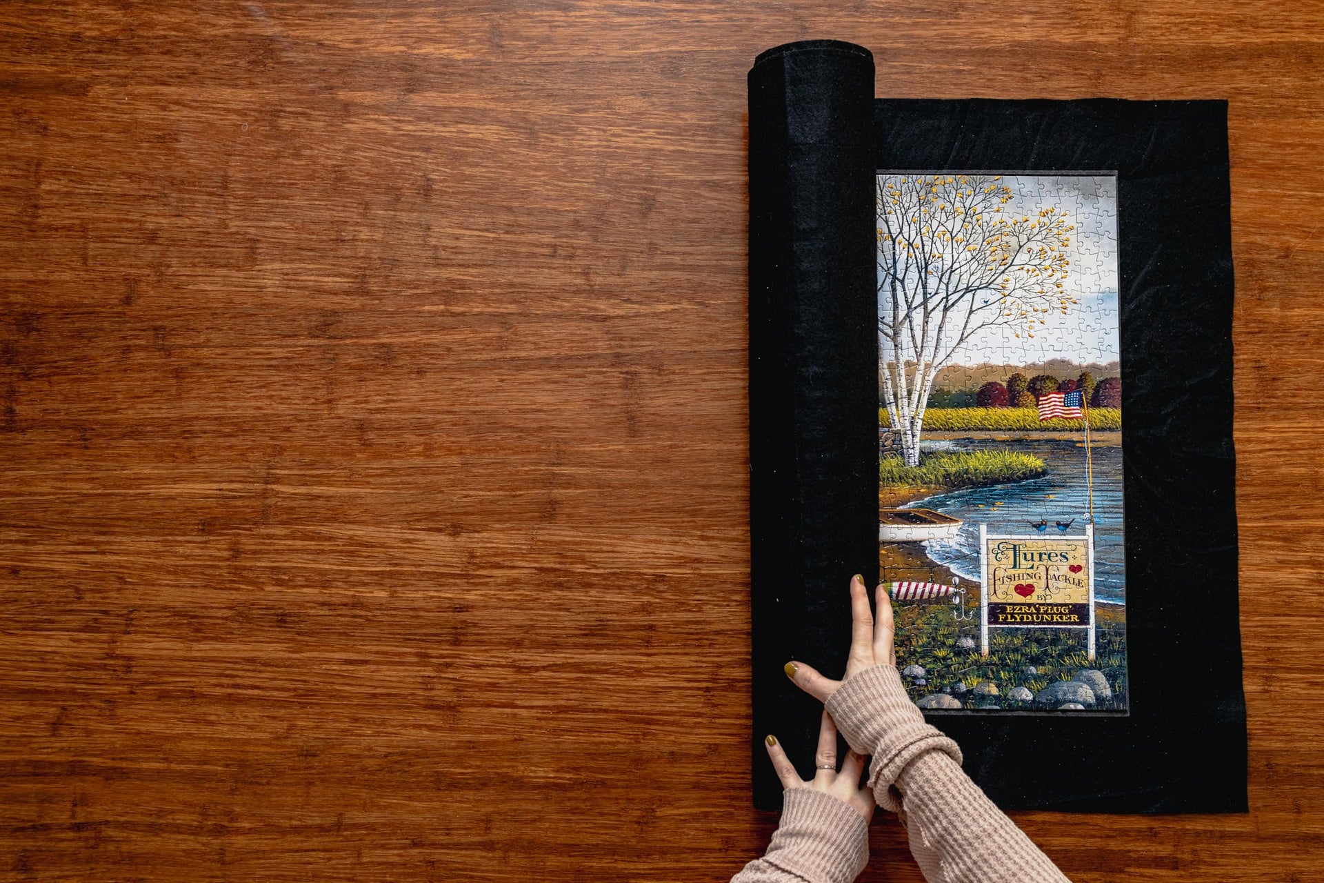 Buffalo Games - Roll-Up Puzzle Mat - Puzzle Saver and Assembly Accessory - Felt Mat - Fits up to 1500 Piece Puzzle - Black