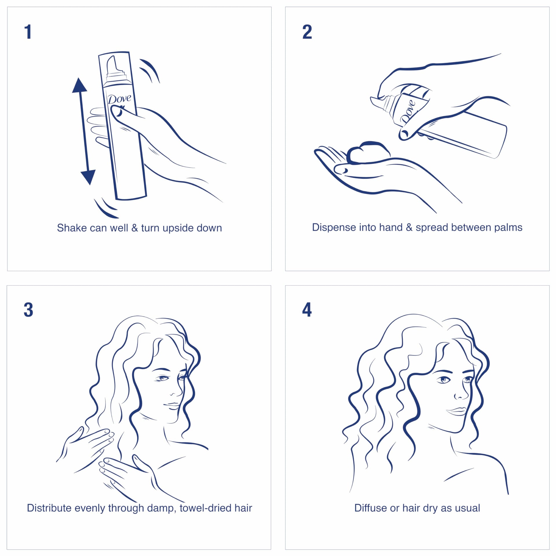 Details: Better style comes through better care. That's why Dove has reinvented its hair styling products collection to nourish and protect hair for a long-lasting, beautiful style. Dove Style + Care with Nutri-Style Complex provides long-lasting style by nourishing and protecting hair to help prevent hair issues such as frizz, static and fly-aways that get in the way of a great style. Dove Style + Care Curls Defining Mousse, nourishes and protects curls from root to tip. Its lightweight, whipped cream texture helps to bring the best out of waves and curls, adding definition to bouncy hair, but without leaving hair feeling crunchy or weighed down. Our hair mousse for women with curly hair helps give you smoother hair, frizz protection and perfectly polished, long-lasting shape, in one simple step. So you get touchably soft, beautiful curls that look as good as they make you feel. There’s nothing like beautiful curls or waves to make you feel special. How to use: shake can well and turn upside down. Dispense mousse into the palm of your hand and spread between your palms. Distribute mousse evenly through damp, towel-dried hair, from root to tips. Style as usual. For best results, begin with Dove Intensive Repair Shampoo and Dove Intensive Repair Conditioner.