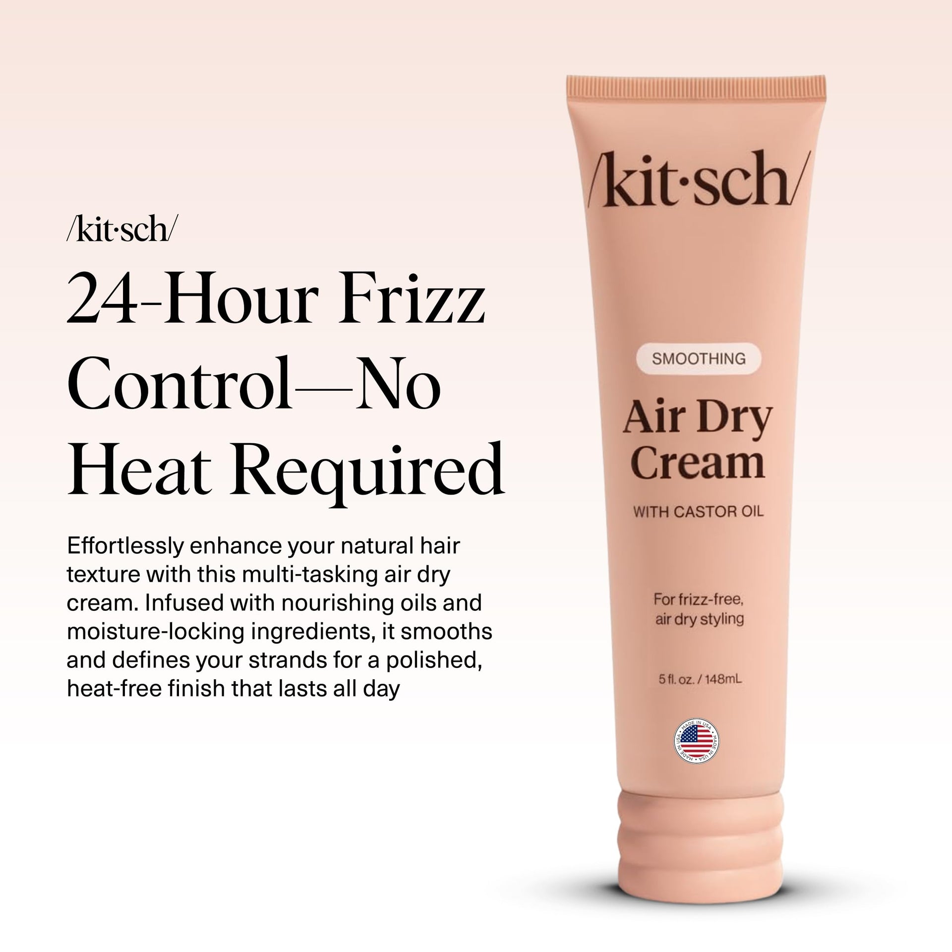 Kitsch Smoothing Air Dry Cream – Frizz Control Styling Cream with Castor & Coconut Oil – Enhances Natural Texture, 24-Hour Smooth Finish, 5 oz