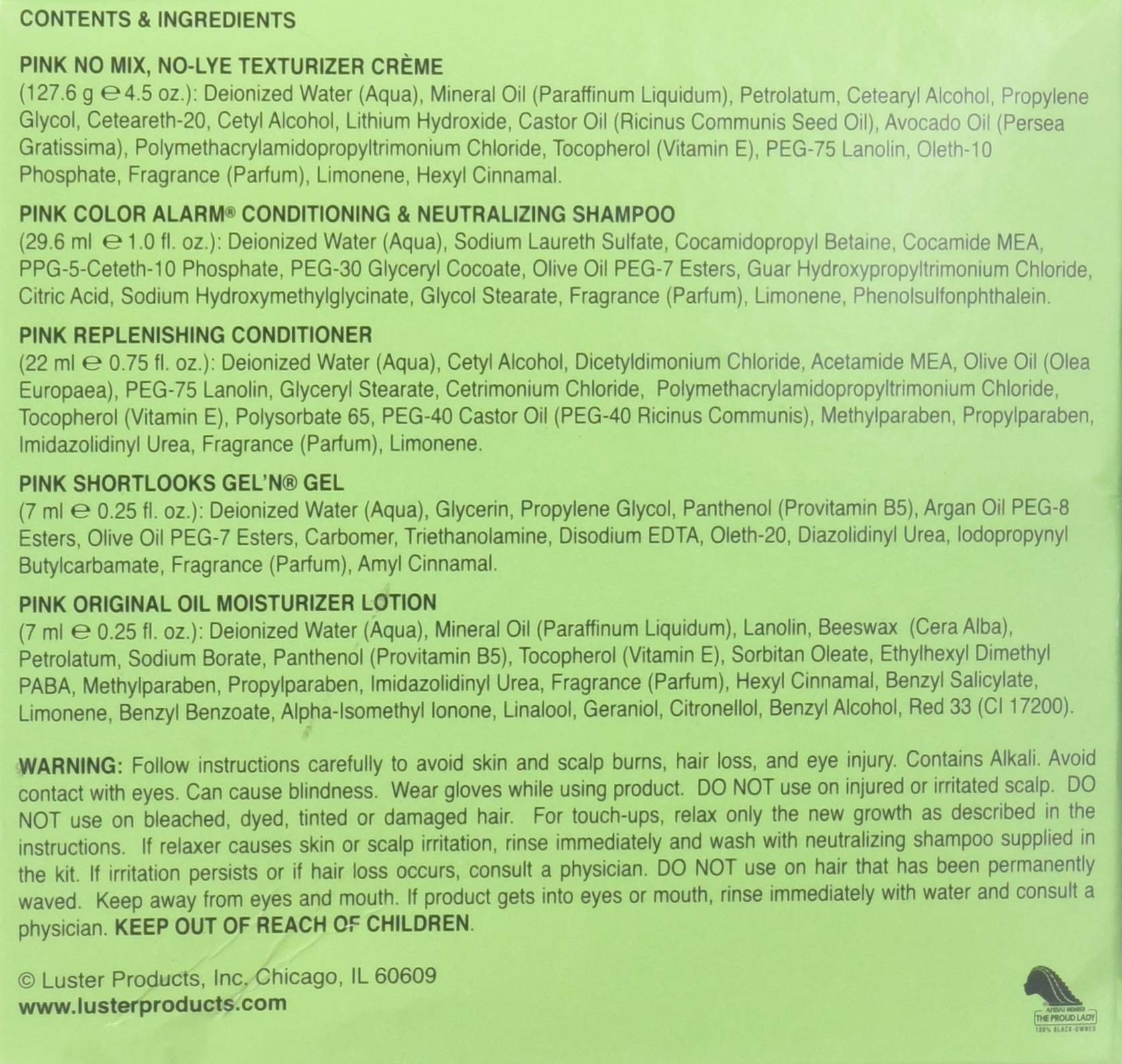 Details: Luster's ShortLooks Texturizer Curl Softener stretches and softens natural curls in minutes. It is enhandced with Avocado and Castor Oils. Plus, it is one strength for all hair textures.
