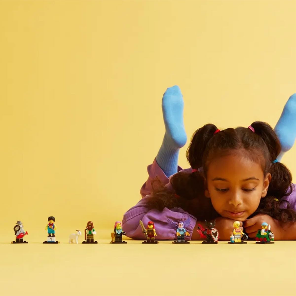 - FANTASTIC FIGURES - LEGO fans can expand their collection with 1 of 12 collectible figures in each mystery box, including Sprinter, Train Kid, Harpy and Costume Triceratops characters