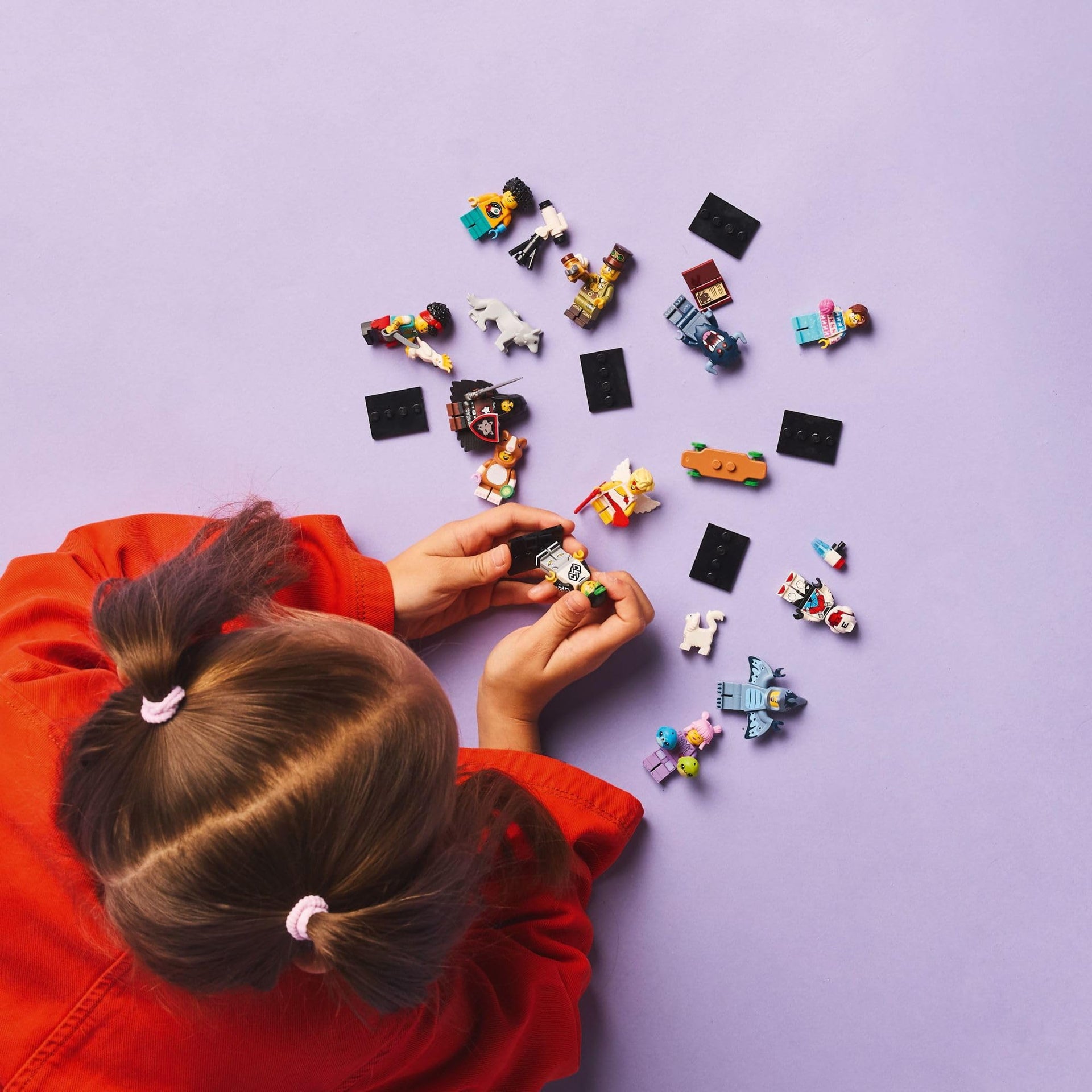 - 12 MINIFIGURES TO COLLECT – Each multipack of LEGO toys is a mystery blind box and could include Wolfpack Beastmaster, Pirate Quartermaster, Steampunk Inventor, Pterodactyl Costume Fan, Bogeyman, Jetpack Racer, Cat Lover, Longboarder, Astronomer Kid, Cupid, Hamster Costume Fan or Plush Toy Collector