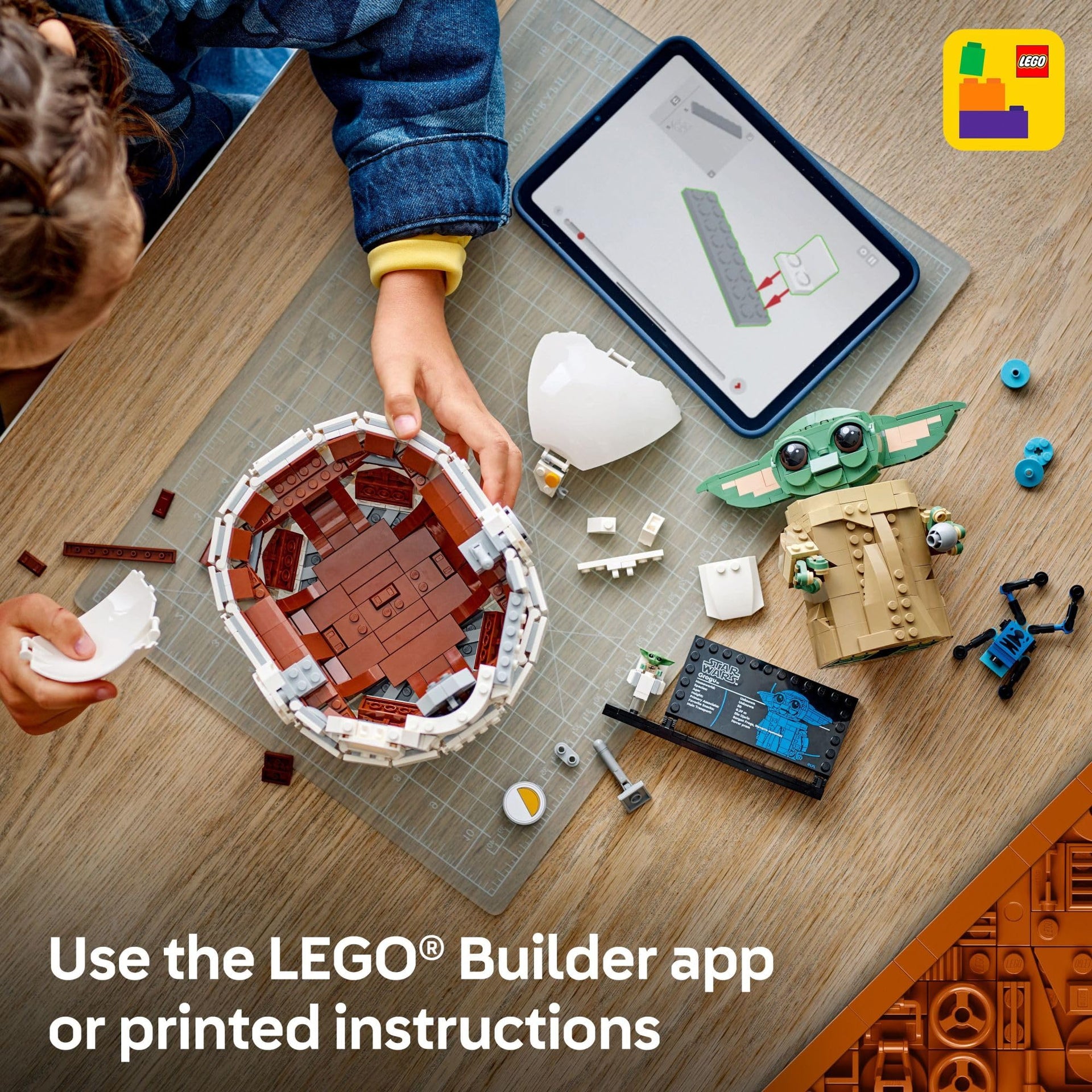 Details: Let kids build their love of Grogu with this LEGO Star Wars buildable Grogu toy figure with hover pram (75403). A cute gift for boys, girls and any Star Wars: The Mandalorian fans aged 10 plus, this build-and-display model makes fun and playful room decor. Grogu has dial-operated arms and posable head and ears, and he can be displayed in or out of the hover pram. There is also a brick-built Sorgan frog (Grogu’s favorite snack!), a shifter knob and a cookie for Grogu to hold. This Star Wars collectible toy building set includes a Grogu LEGO figure in a small buildable hover pram, plus an information plaque to complete a joyful display. The set comes with step-by-step instructions and check out the LEGO Builder app for intuitive, 3D zoom and rotate viewing tools to enhance the creative experience. Contains 1,048 pieces.
