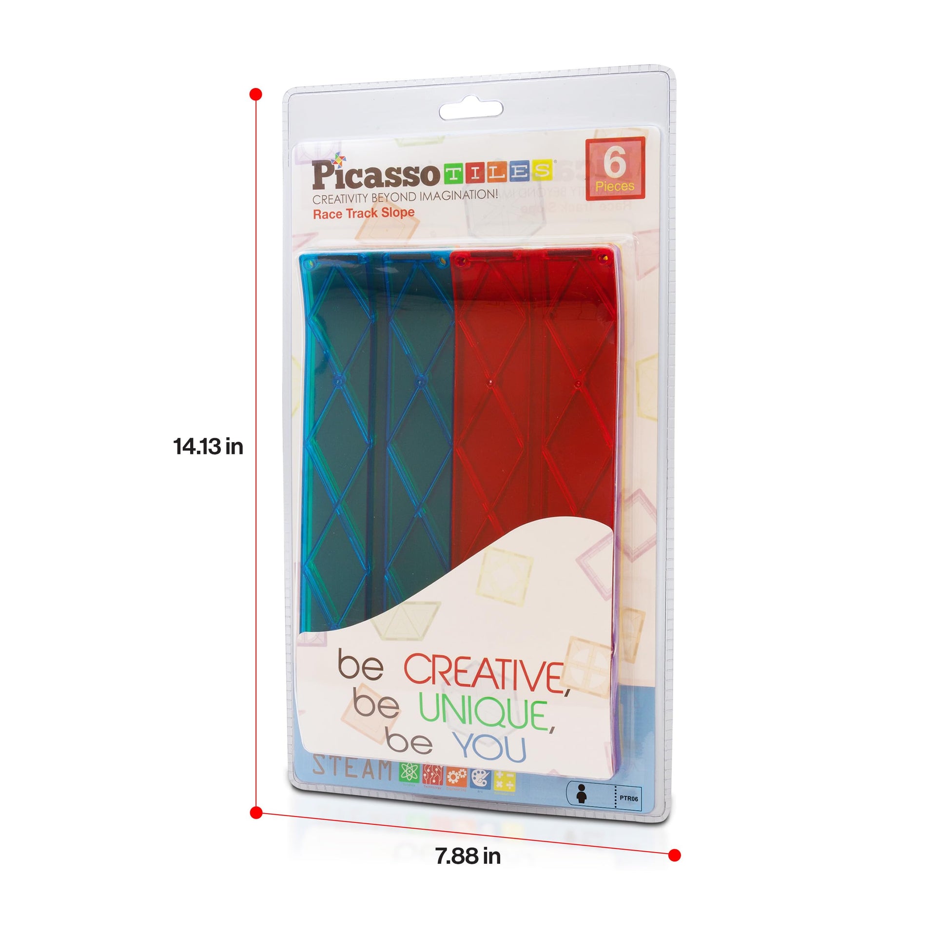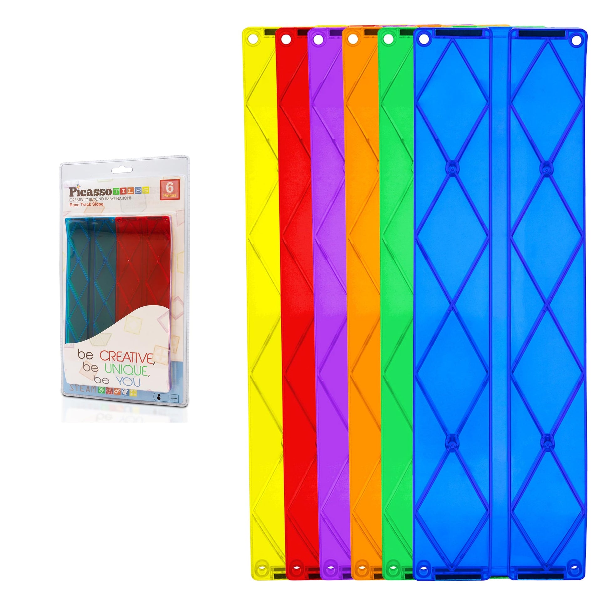 PicassoTiles 6-Piece Magnetic Tiles Race Track Accessories - STEM Building Blocks for Kids, Educational Construction & Creative Play PTR06