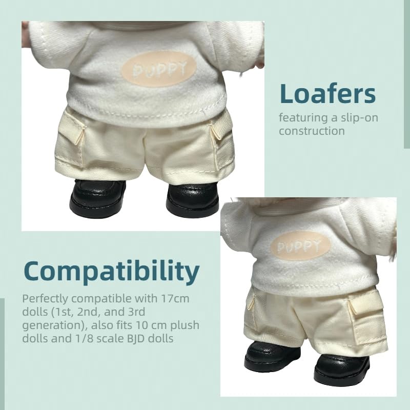QIXINGWISE 1 Pair Doll Shoes for 15-17cm Dolls, Mini PU Leather Loafers, Fashion Doll Outfit Accessories, Black