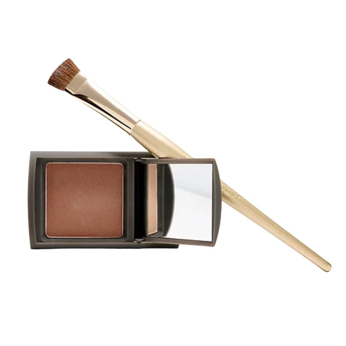 Makeup product with a brush on a white background