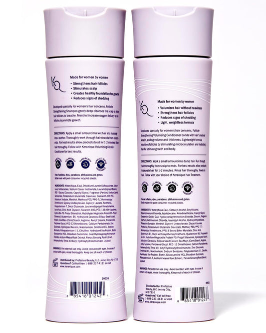 Keranique Volumizing Shampoo and Conditioner Set for Hair Repair and Growth with Biotin and Keratin for Women, Thinning Hair Formula, 8 Fl Oz Each