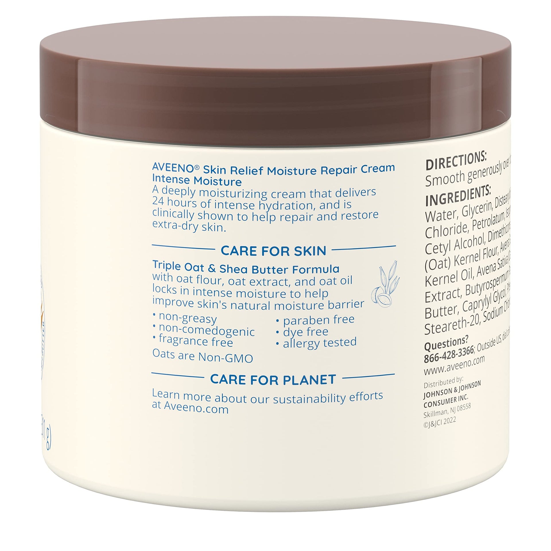 Aveeno Skin Relief Intense Moisture Repair Body Cream, Triple Oat & Shea Butter, Fragrance-Free, Long-Lasting Relief for Extra-Dry Skin, 11 oz