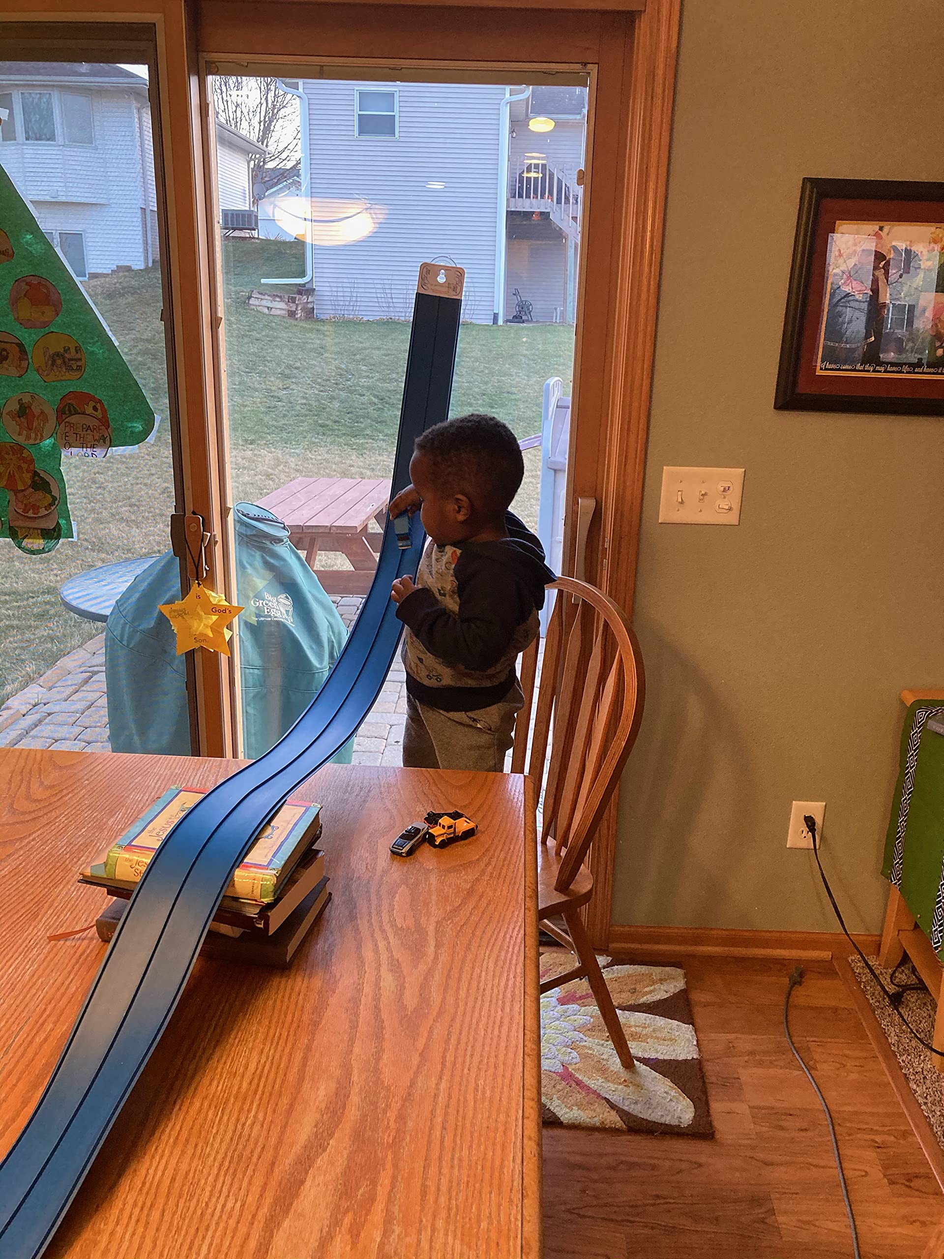 Details: 15 feet of highly flexible two-lane racetrack. Blu Track allows for custom racetrack configurations due to the flexible material. Set up and tear down within 30 seconds; no assembly required. Easy to move and store. No small parts. Additional Blu accessories, including cars, are sold separately. Includes 1 - 15 ft coil of 2 lanes wide Blu Track Classic Series racetrack (Age: 3+) 1 BluTrack Track anchor 1 BluTrack Adaptable Hanger System 1 Suction Cup Compatible with Blu Track Racer cars or any other 1/64th scale die-cast vehicle. Note: Track performs best at 70 degrees Fahrenheit; if colder, the track will be stiff and can be warmed with hot water. If the track is too soft, it can be cooled in cold water. Additionally, rolling the track back and forth can help mitigate the tail end from curling. If the track has been kept in storage, weighing down the tail end can help excessive curling.