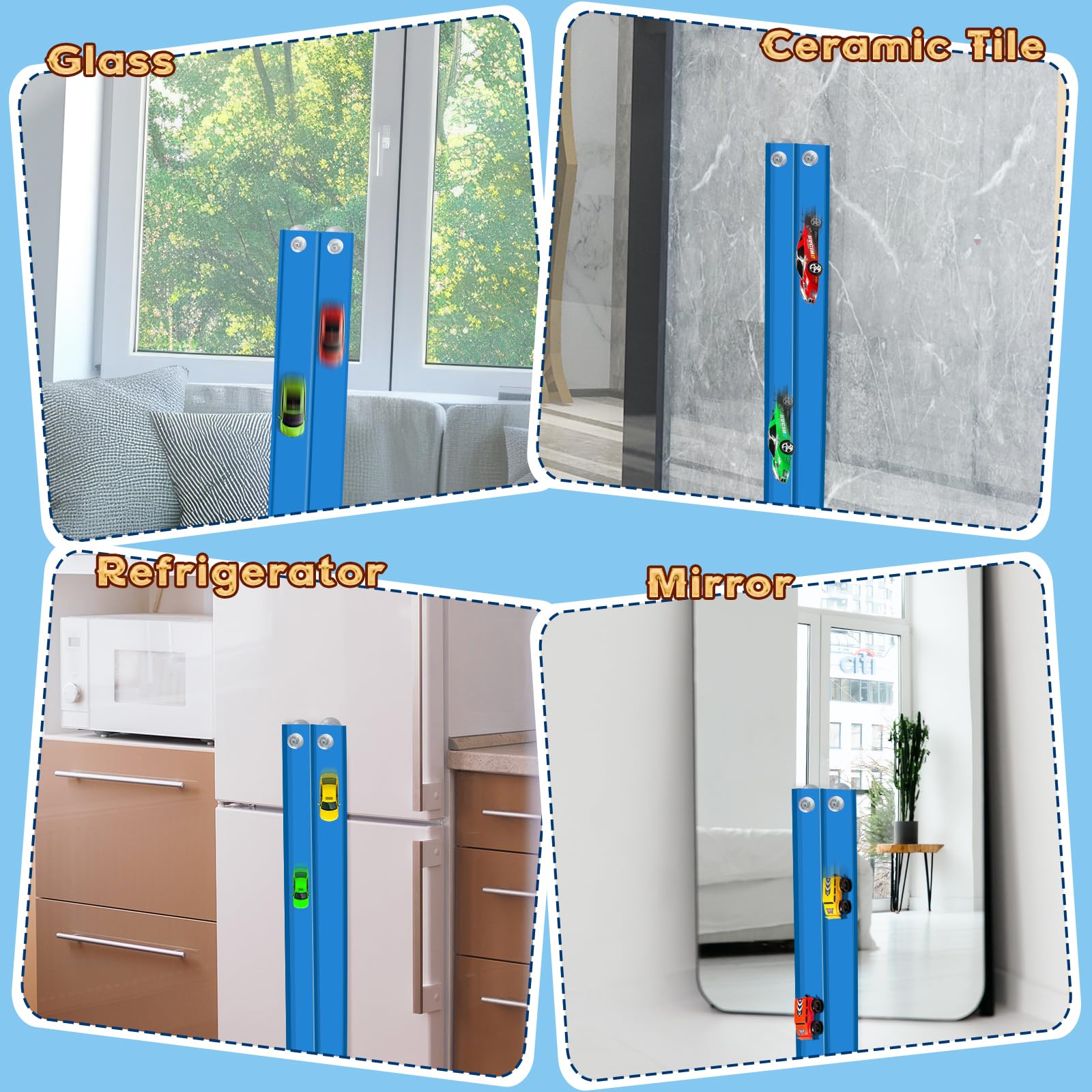 - Fortified with mighty suction cups of legendary tenacity, this enchanted track clings to nearly any surface you desire, windows, tables, doors, even countertops!