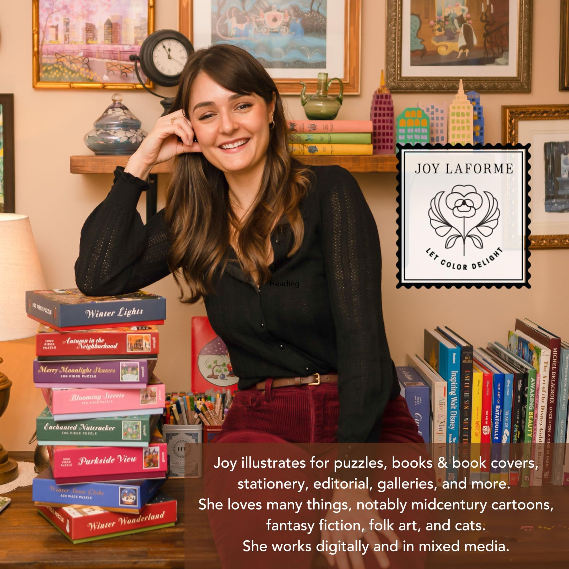 - 🎄STUNNING DETAILS – Featuring artwork by Joy Laforme, this jigsaw puzzle for adults displays a fun nighttime image of a vibrant city all lit up and decorated for the holiday season. Plus, shiny gold foil accents add an extra element of appeal.