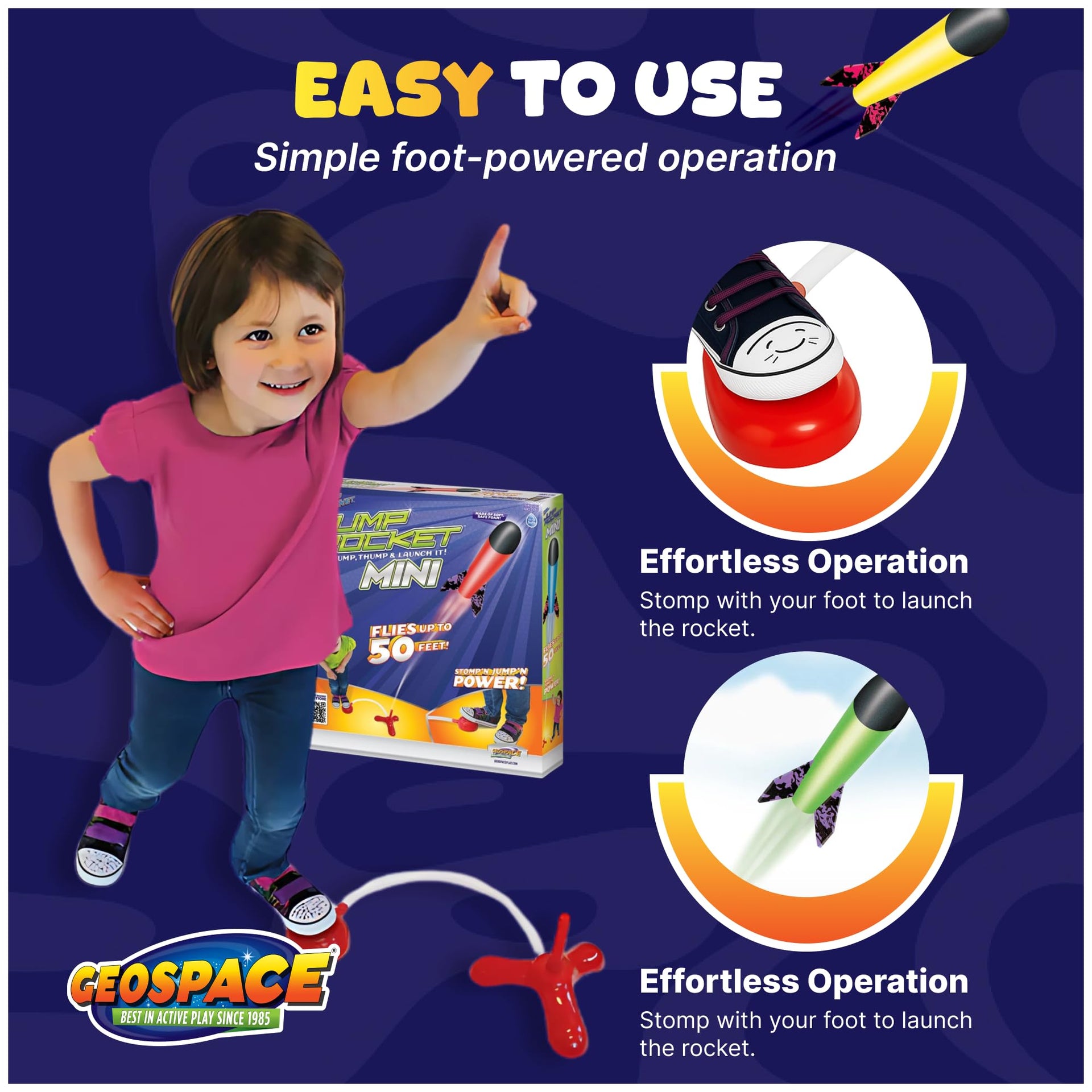 - EASY TO USE – Designed specifically for younger kids and toddlers aged 3-5 and up, the stomper rocket launcher provides effortless operation. Simply press with your foot power on the pad and watch the foam rocket soar, making it one of the easiest outdoor toys for endless, worry-free fun!