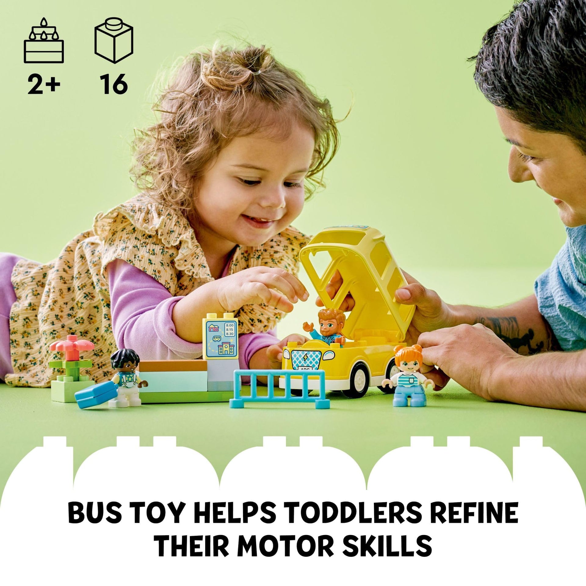 - Skill-building school bus toy set – Preschool boys and girls ages 2+ embark on an everyday adventure and learn fine motor and social skills as they hop aboard the LEGO DUPLO Town Bus Ride (10988) toy