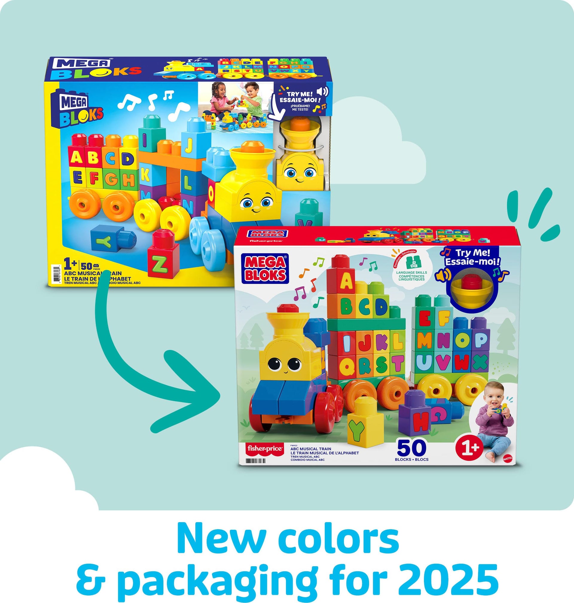 MEGA BLOKS First Builders Toddler Building Blocks Toy Set, ABC Musical Train with 50 Pieces, Music and Sounds, Ages 1+ Years