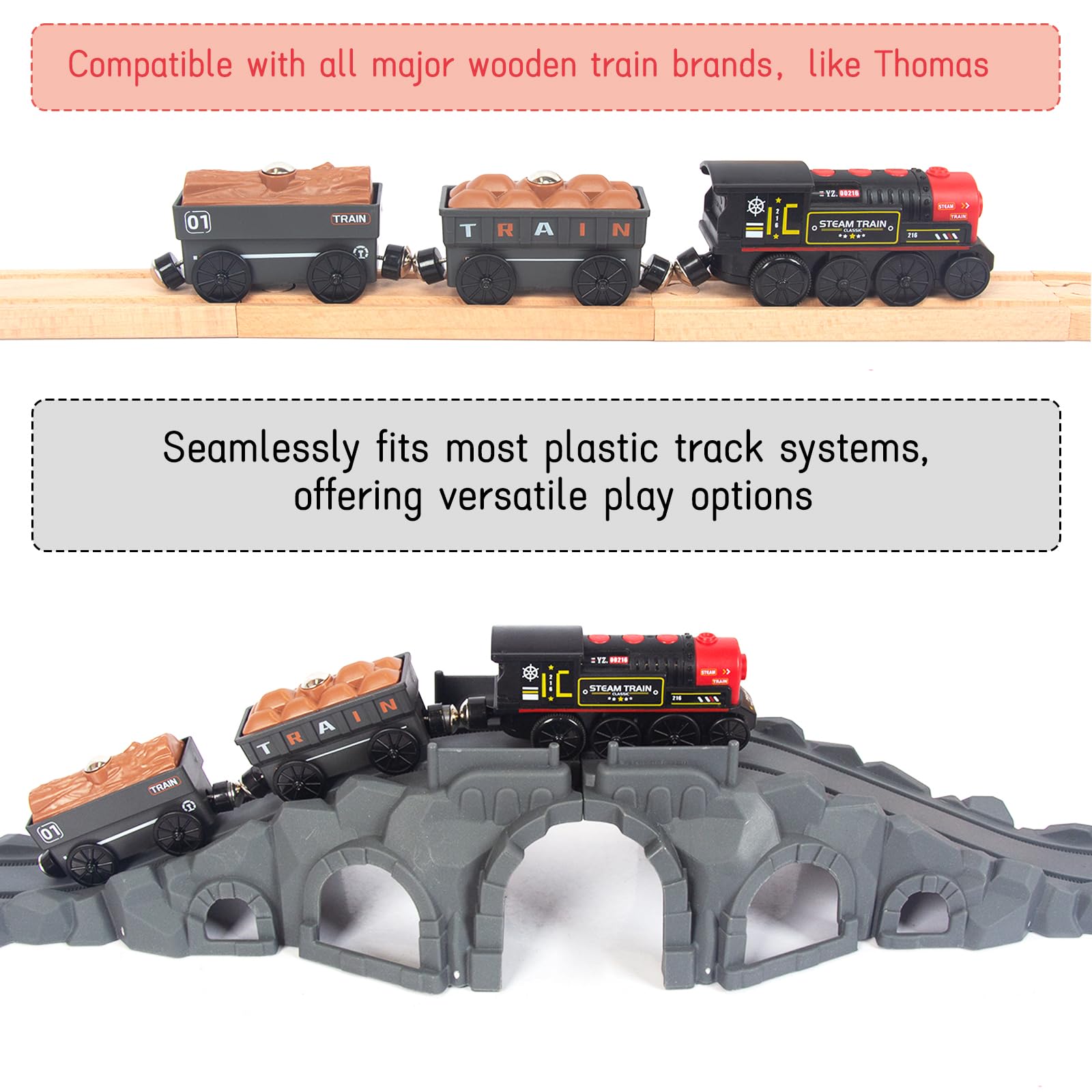- Universal Compatibility: Seamlessly integrates with all major wooden train track systems, including Thomas & Friends, Brio, Chuggington, KidKraft, and IKEA, expanding play possibilities.