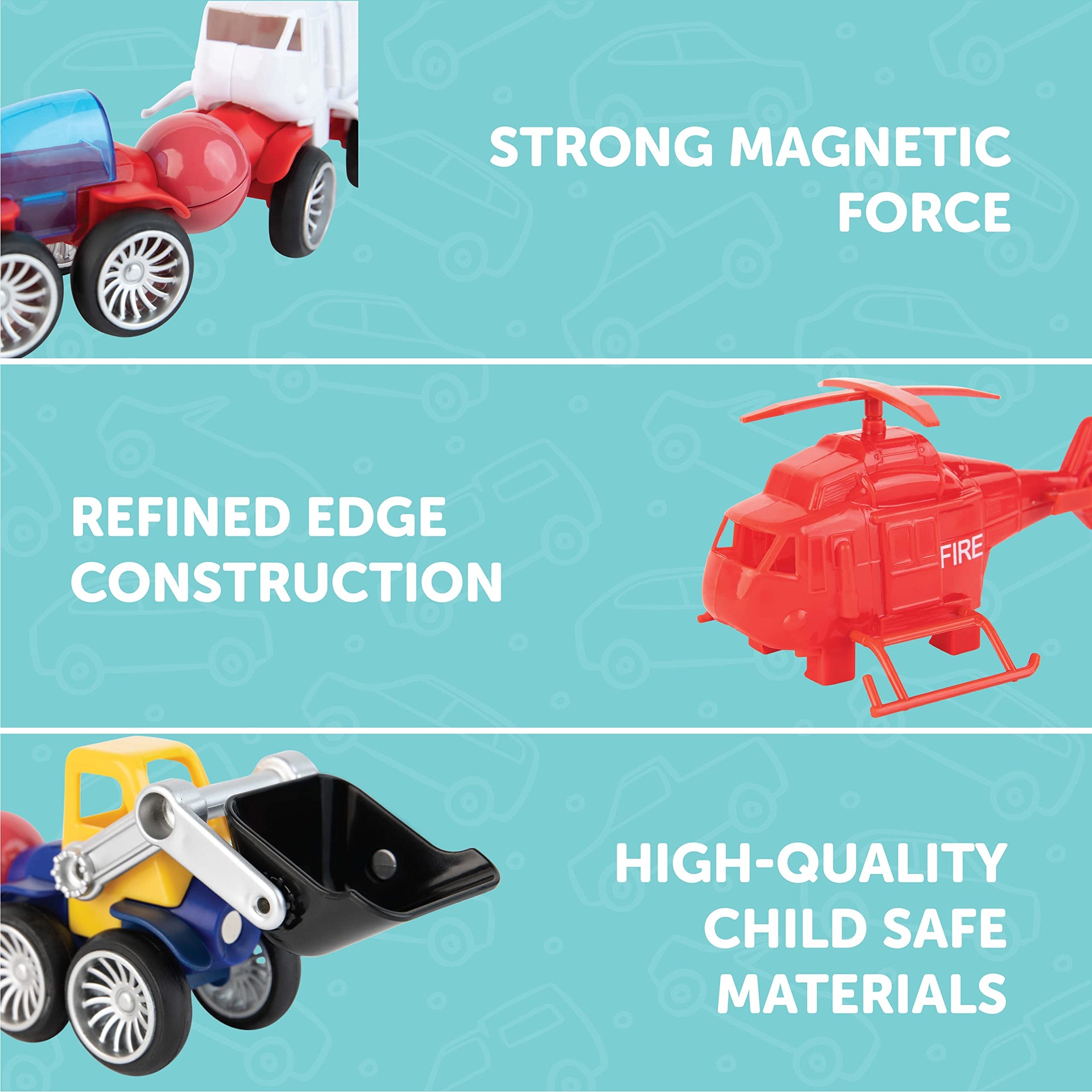 - STIMULATING COLORS & DESIGN. With vivid colors and varied forms, this magnetic emergency vehicle set attracts kids to have more play time and enjoyment while carrying them around to any space or room. Kids can even have lesser screen time and more relevant hands-on experiences.