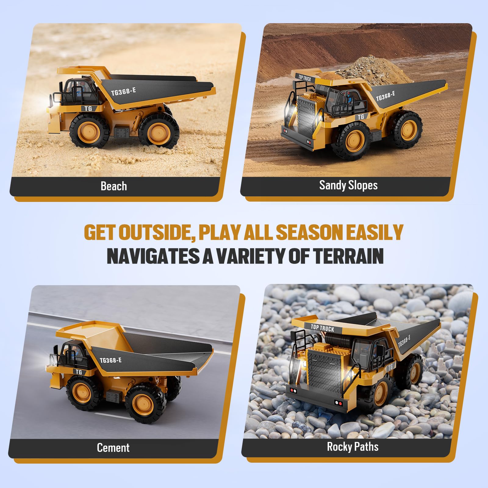 - The Perfect Gift for All Ages: From Christmas to birthdays, Halloween to New Year's, this remote control dump truck toy is the ultimate present for every occasion. Whether you're 5 or 50, this toy brings endless excitement; Whether you're an aspiring builder or a fan of impressive machinery, this construction truck toy is bound to keep you entertained