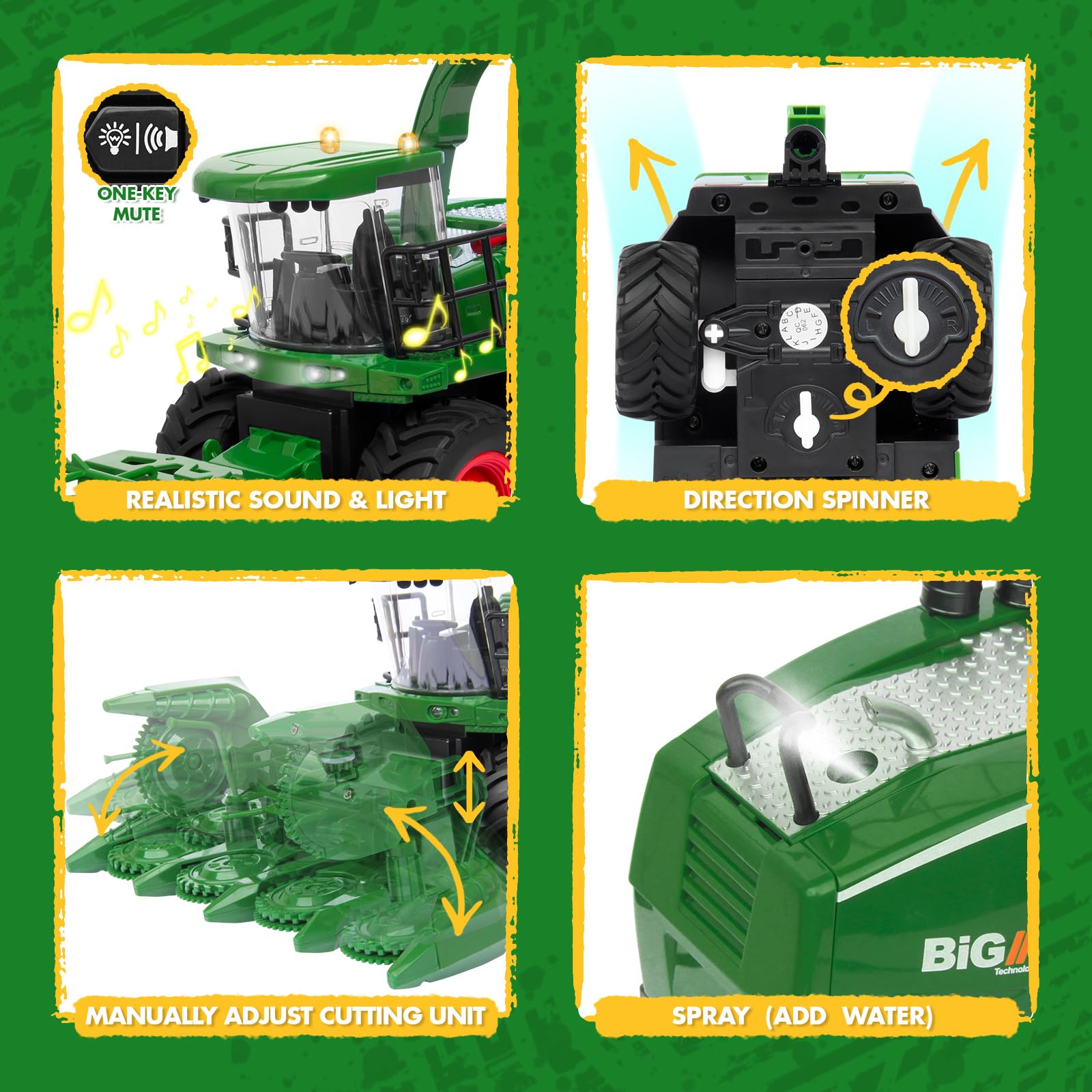 - 2-IN-1 COMBINED HARVESTER TOY: This remote control combined harvester tractor toy immerses your kids in farming. The tractor toy set includes two interchangeable harvesting heads, allowing little farmers to experience different farming scenes during their farm adventures. The lifting design and friction-driven mower simulate realistic mowing actions, ensuring the fun never stops