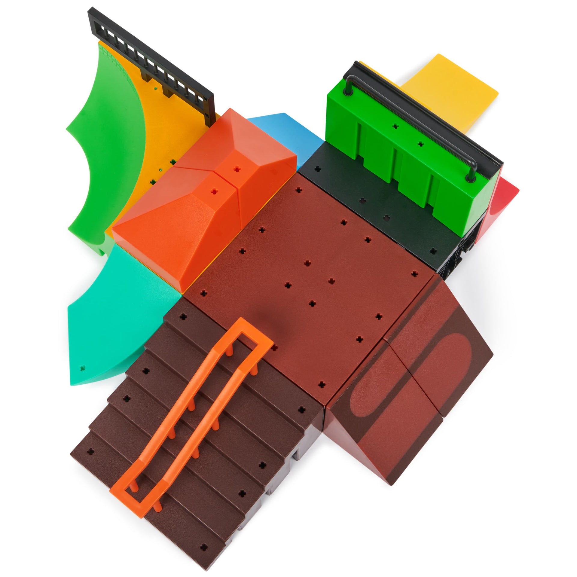 - Includes: 1 Tech Deck Fingerboard, 1 Triangle Ramp, 2 Small Pyramid, 1 Roll-In Ramp, 1 Rail, 1 Panel, 2 Small Support, 2 Scaffold Beams, 11 X-Connectors, 4 Large X-Connectors, 8 Foot Pegs, 1 Instruction Sheet