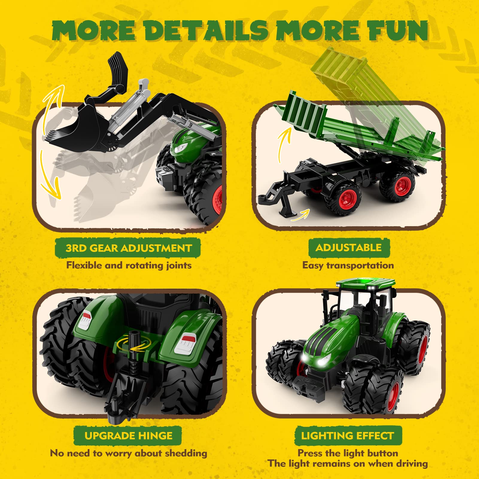 - HELP KIDS BUILD CRUCIAL SKILLS: As your little one "plows" while learning about farming and farming techniques, the abundance of accessories will spark your child's imagination and your child can create their own farm - with endless possibilities. This tractor toy set is the ideal learning remote control toy for toddlers and kids