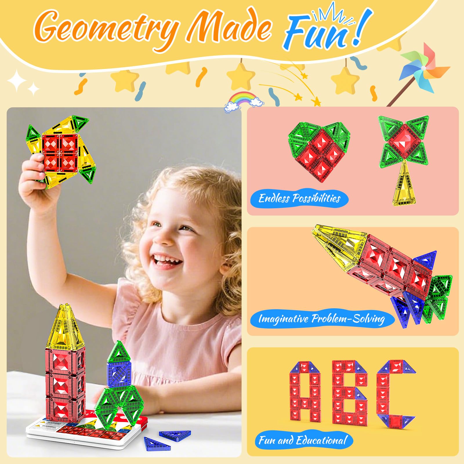 Zupooko Mini Magnetic Tiles for Kids 3-8 | Travel Magnetic Building Blocks with Metal Storage Box | STEM & Montessori Educational Toy Gift