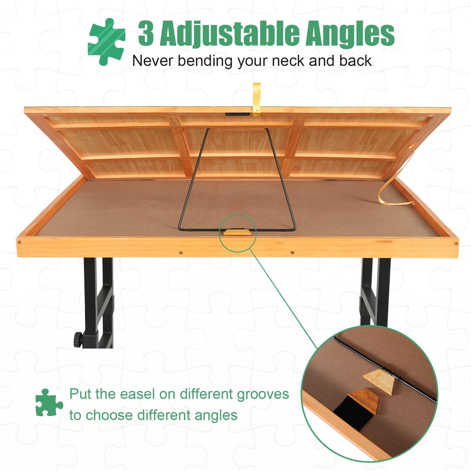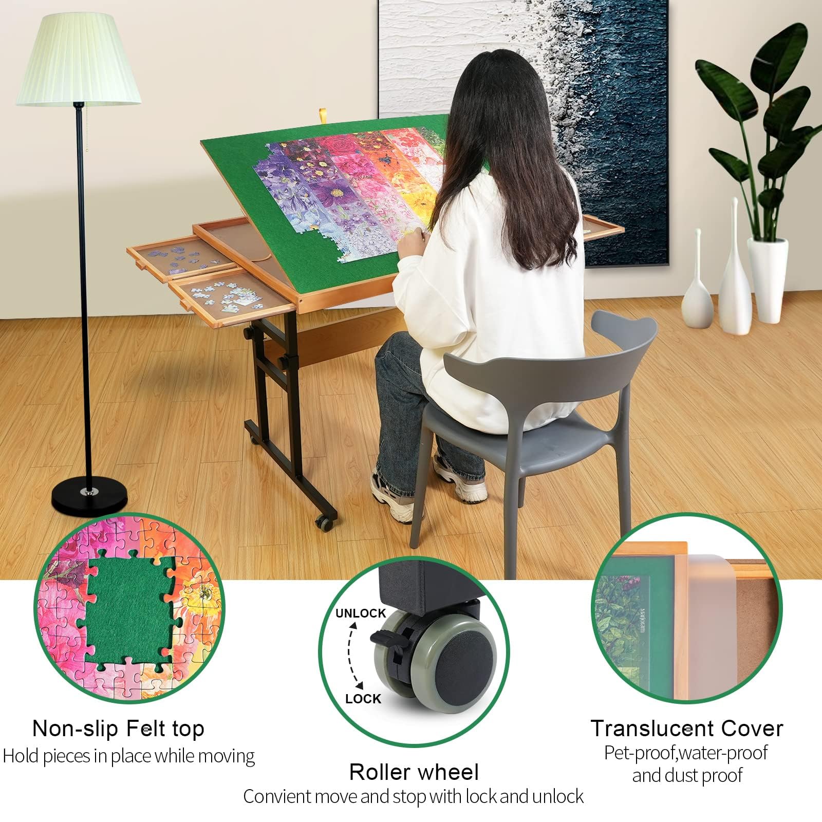 - 【Easy to Move with Universal Castors】Puzzle table with 4 Universal Castors,it can be easily moved anywhere, two of the Roller Wheels can be locked to hold the table where you want it and prevent the puzzle table from getting away from you