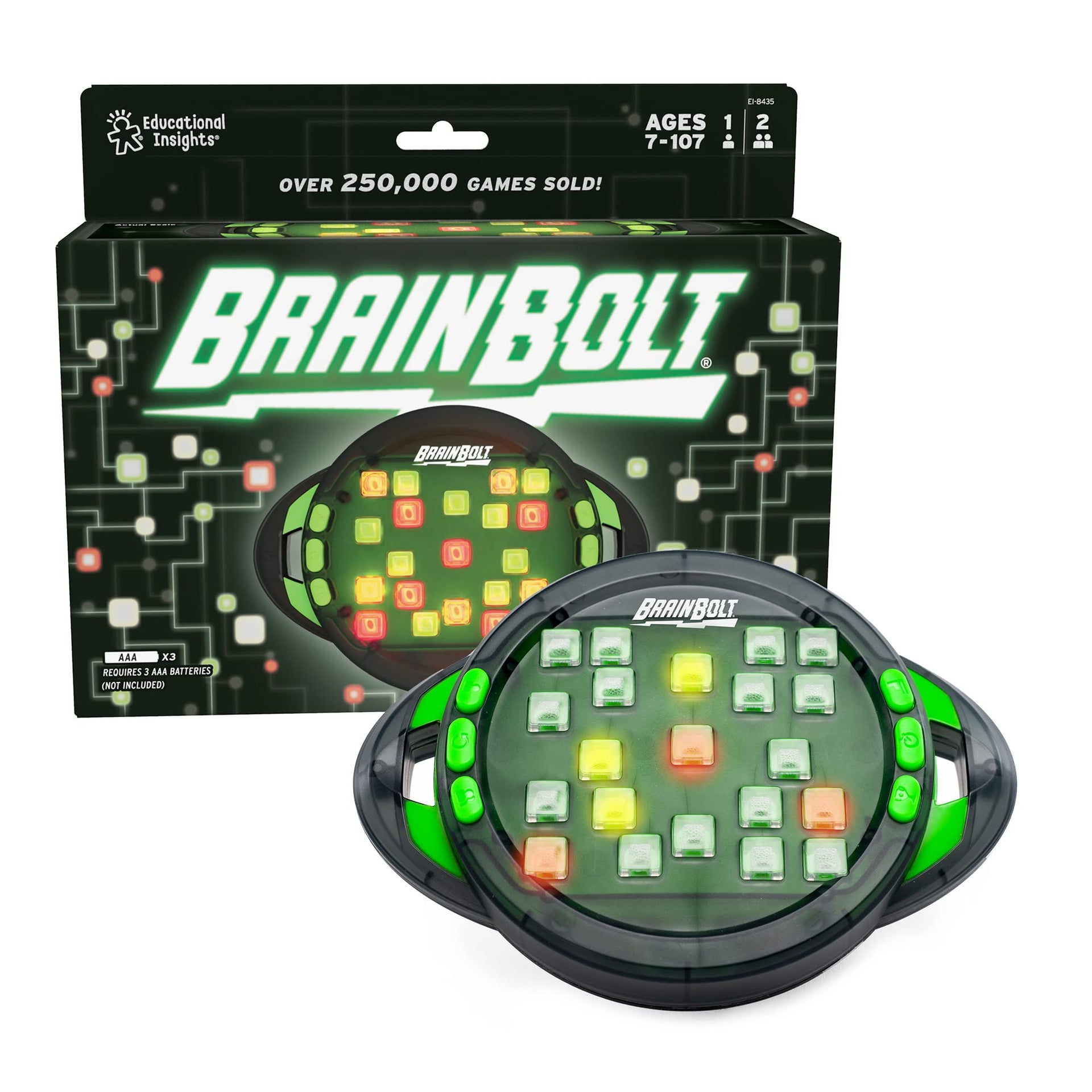 Details: Electrify your game collection with BrainBolt, the ultra-addictive, mind-melting memory game from the brainteaser experts at Educational Insights! Watch the lights, remember the pattern, and see how long you can follow along before making a mistake. Play solo or with a friend; try the timed and advanced modes to test your skills. Portable and lightweight, BrainBolt is great for playing on the go. The perfect screen-free alternative for the home, exciting brain break for the classroom, or go-to travel toy, BrainBolt provides challenging fun for all ages. Requires 3 AAA batteries (not included).