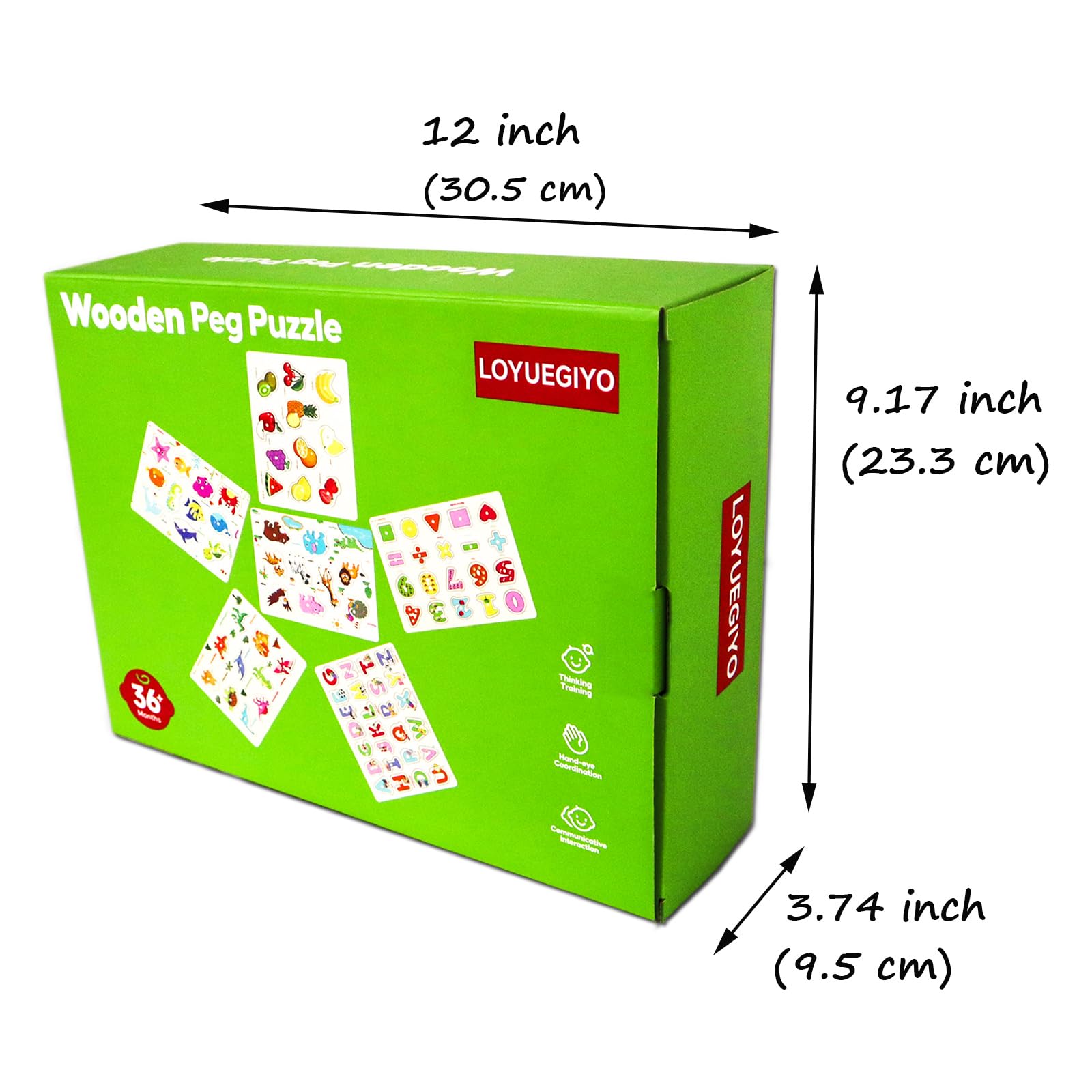 - 【6 Pcs Puzzle Toy】 Package comes with a color box and 6 pcs wooden peg puzzles that 1pc dinosaur puzzle, 1pc Ocean puzzle, 1pc alphabet puzzle, 1pc number shape puzzle, 1pc animal puzzle,and 1pc Fruit puzzle.