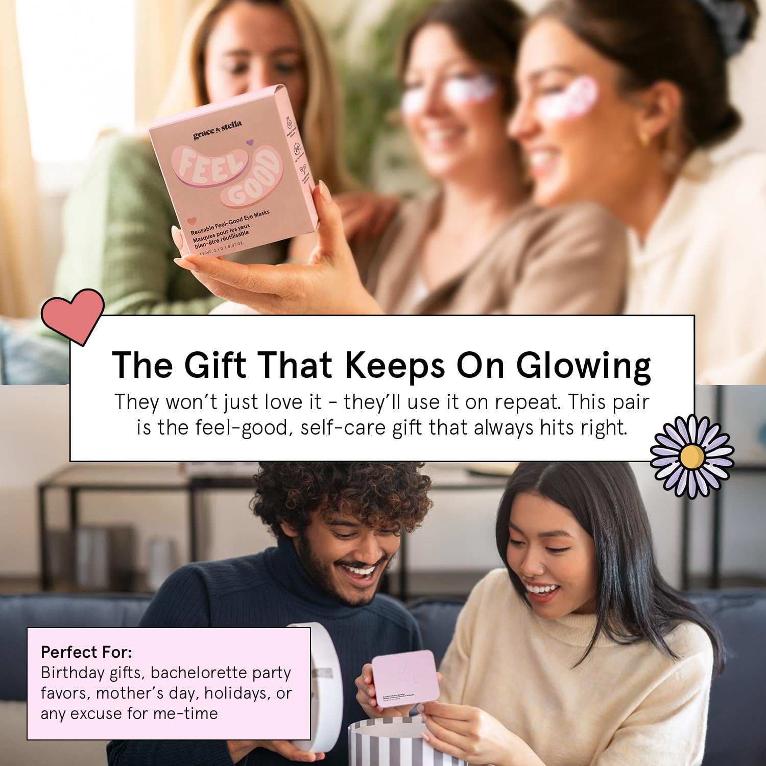 - Awesome Self Care Gifts for Women - If you're looking for bridesmaid gifts or birthday gifts for women, look no further. Our reusable under eye gel pads are perfect for any occasion. They come with a tin case & a cute pink box, ready for gifting.