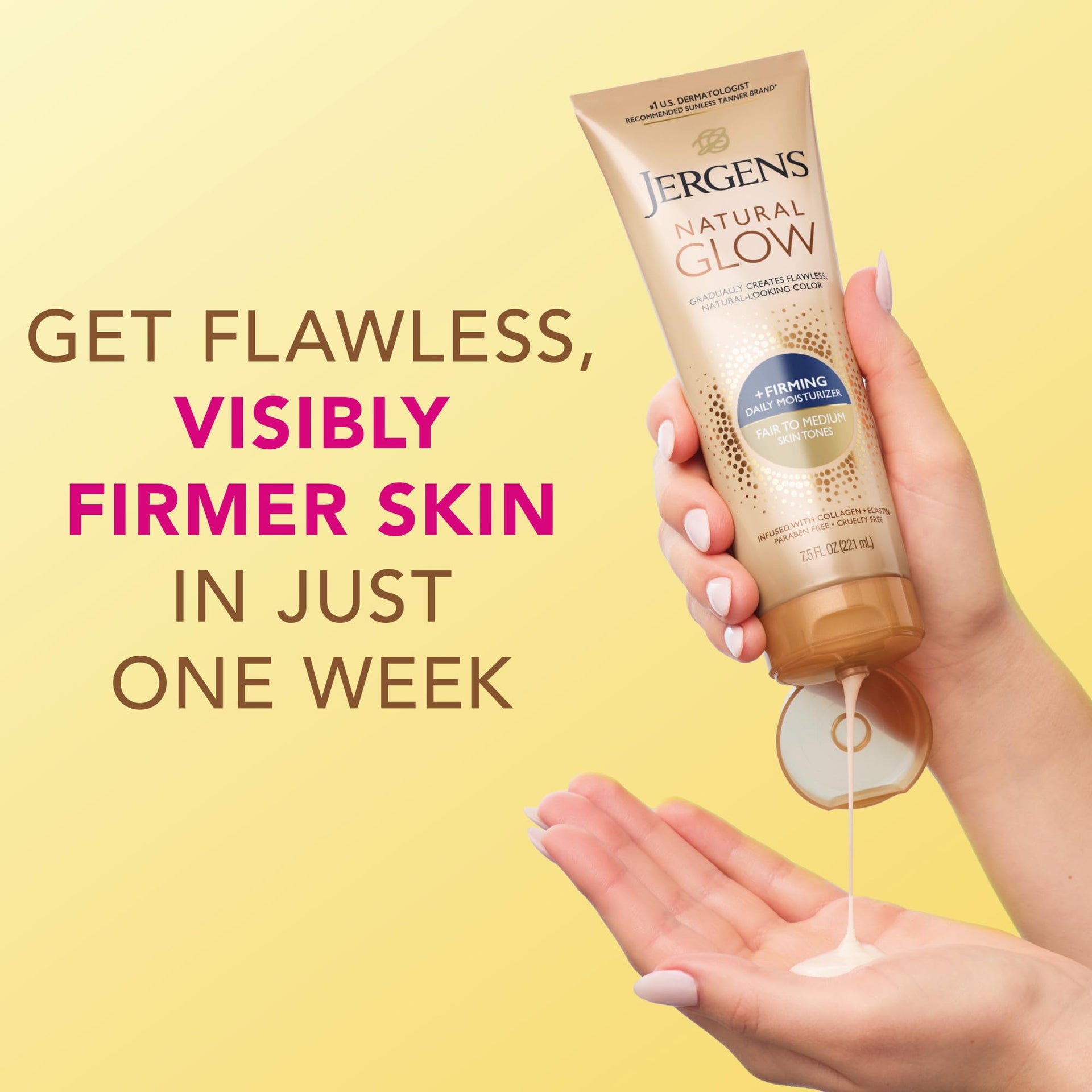 Jergens Natural Glow + Firming Self-Tanner Lotion for Fair to Medium Skin – Sunless Moisturizer with Collagen & Elastin, Reduces Cellulite, 7.5 Fl Oz