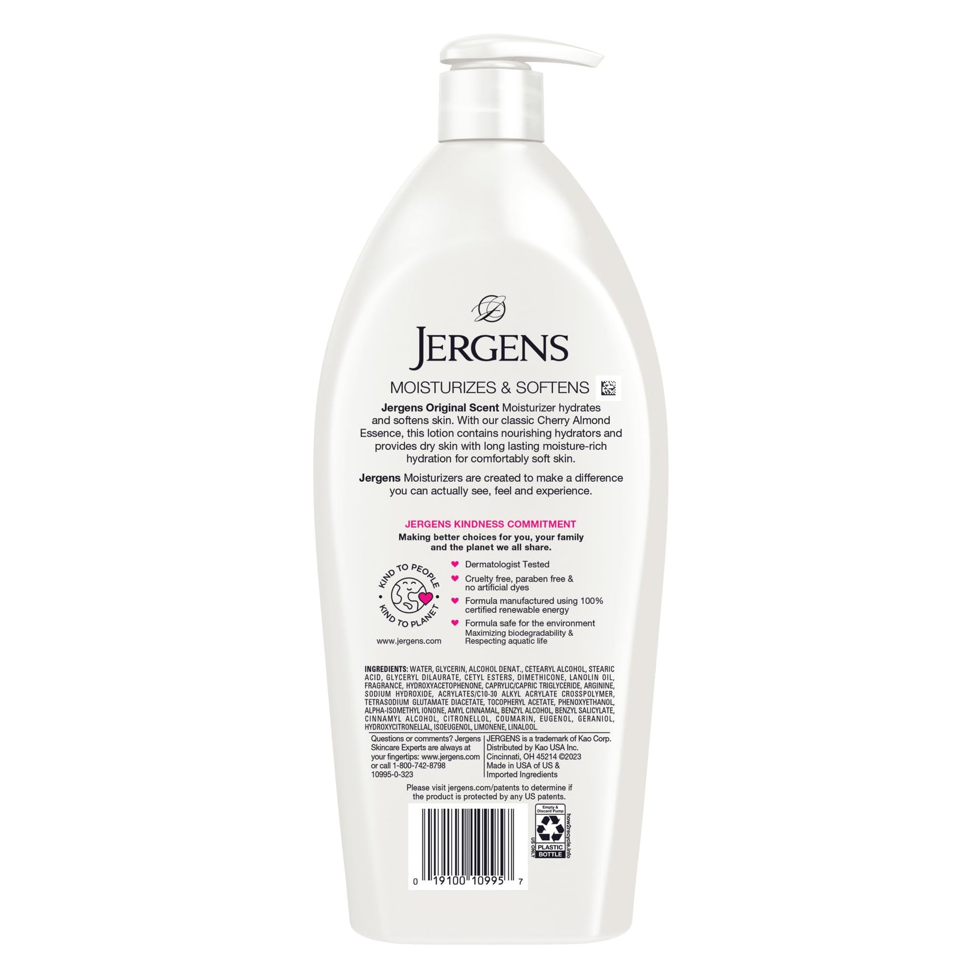 Jergens Original Scent Dry Skin Body Lotion, Hand and Body Moisturizer, Cherry Almond Essence, Dermatologist Tested, 32 Oz