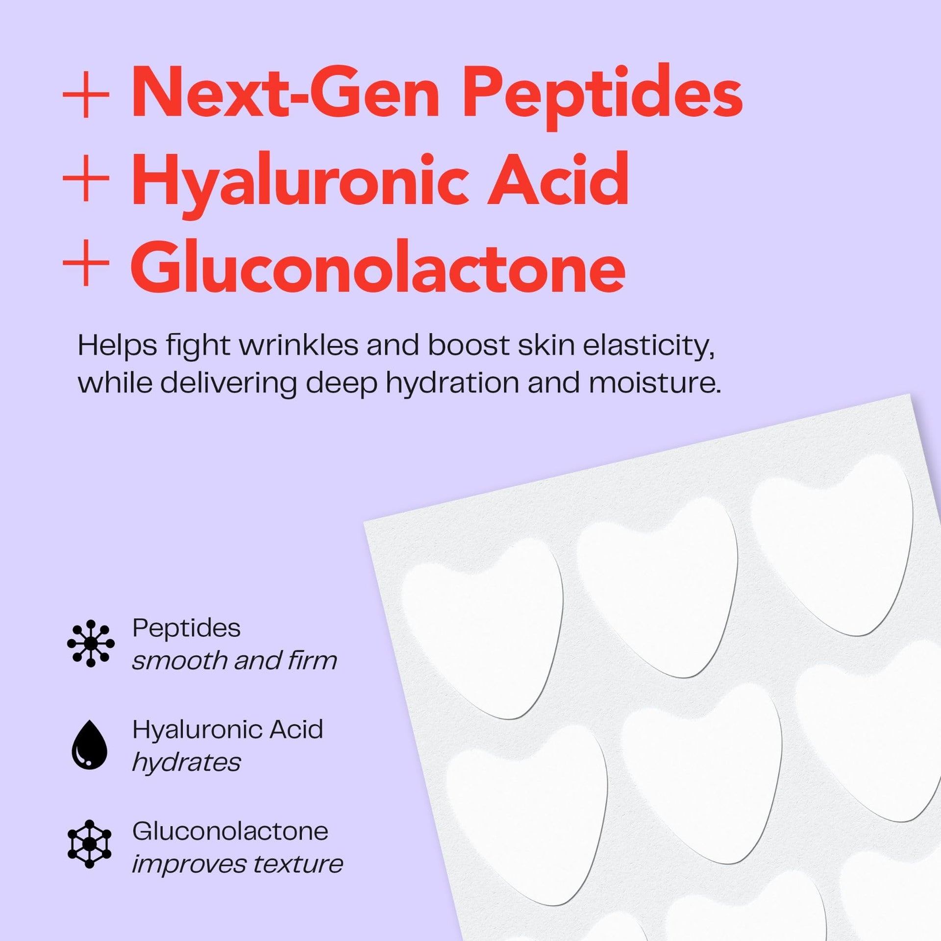 - ANTI-AGING PEPTIDES: Infused with high-quality, science-backed ingredients, including peptides, Vitamin E, adenosine, and hyaluronic acid, our patches act as a barrier to help seal the ingredients into the skin for better penetration