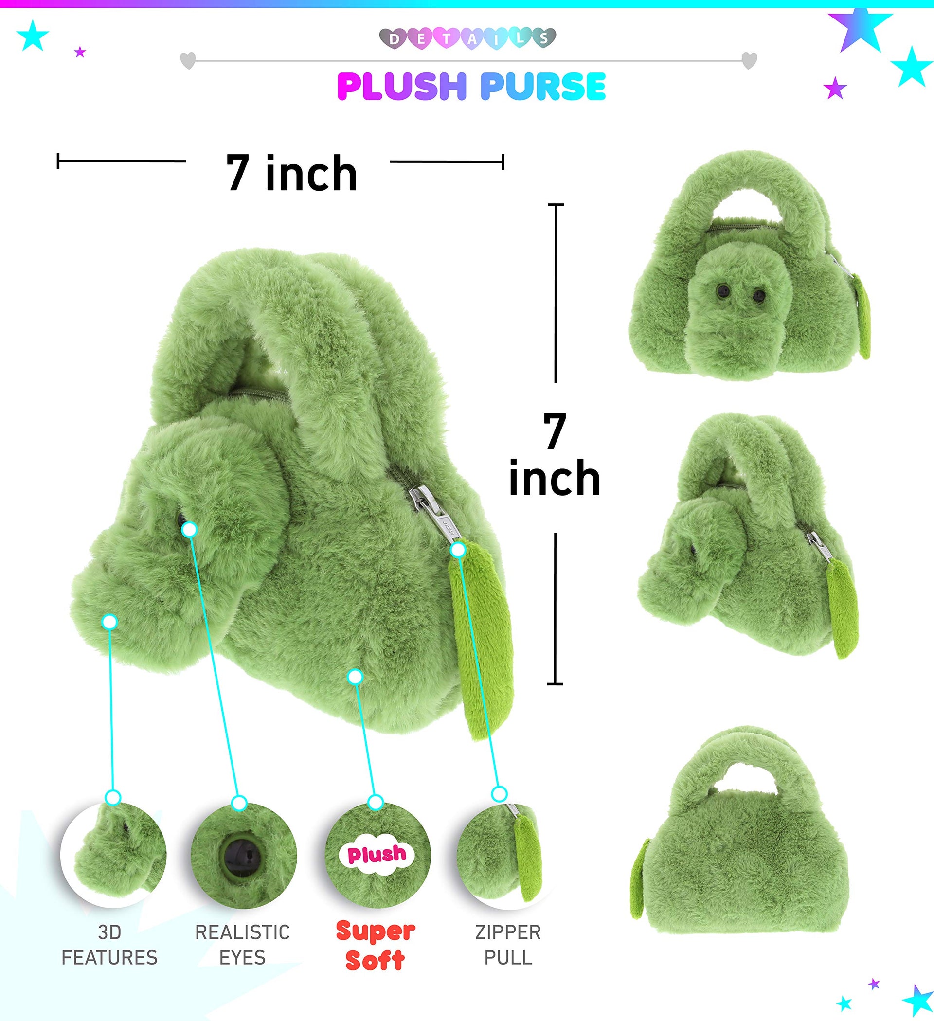 DolliBu Alligator Plush Handbag – Soft Stuffed Animal Purse for Kids, Pretend Play, Dress Up, Fluffy Toy Bag for Children