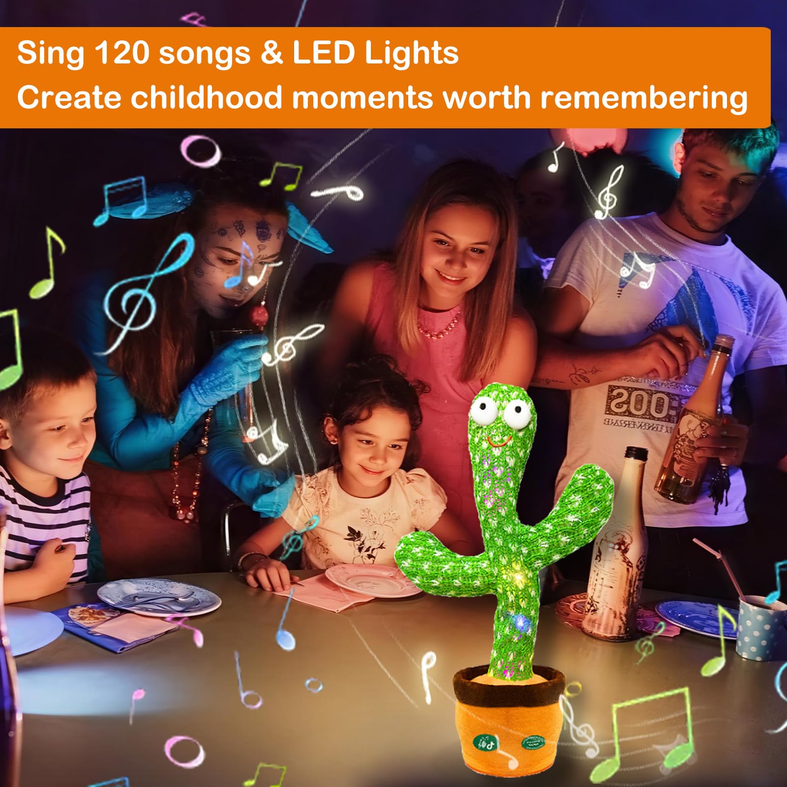 - LED COLORFUL FLASHING LIGHT:Singing cactus toy mimics sings including nursery rhymes and TikTok hits in turn. The cactus dancing toy will twist his body and have rhythmic colored LED lights when singing. Apply to relieve adult stress and create intertesting atmosphere
