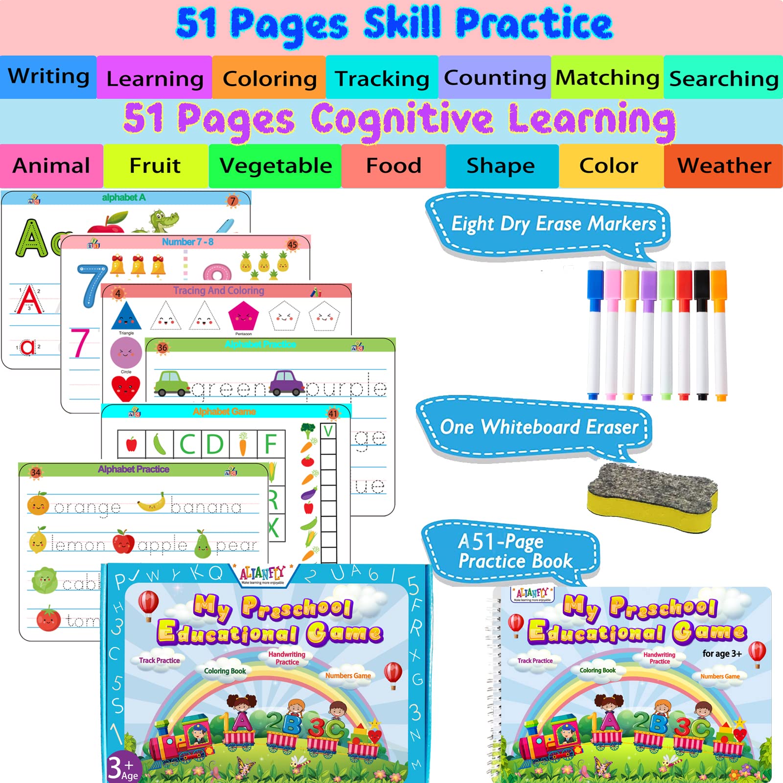 ALIANFLY Preschool Learning Workbook - Montessori Handwriting & Tracing Activities for Toddlers, ABC Learning, Autism-Friendly Busy Book