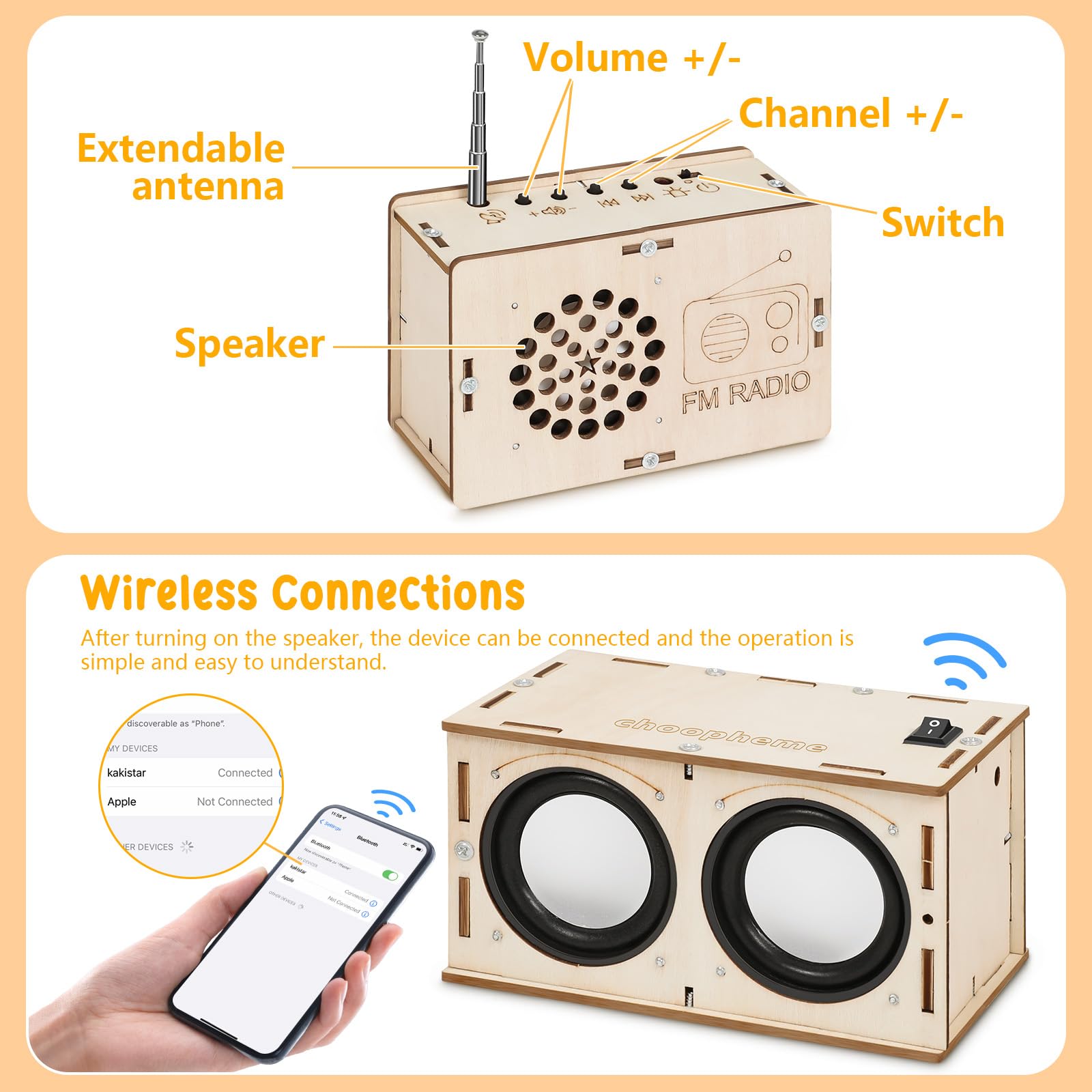 STEM Electronics Kit for Kids 8-14 – Build Bluetooth Speaker & FM Radio, DIY Science Projects & Experiments, Birthday Gift for Boys & Girls